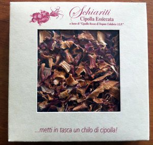 Tra i prodotti trasformati a marchio Schiariti, figura dal 2006 anche la cipolla rossa essiccata, prezioso ingrediente per svariati usi gastronomici: dai sughi ai risotti e secondo alcuni, ideale anche nei ripieni di pasta fresca. Il prodotto è disponibile tutto l'anno.