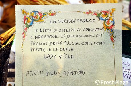 Dalle 12:30 fino all'ora di chiusura del supermercato si sono potute assaggiare tante ricette sfiziose a base di legumi della Tuscia viterbese e patata viola Vitelotte, Lady Viola (vedi notizia precedente).