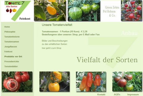 Sul sito web di Tomate7 (www.tomate7.de) si possono acquistare diverse conserve di pomodoro. Inoltre si possono ordinare anche una serie di salse particolari. Oltre alle piantine di pomodoro, è possibile acquistare anche diverse varietà di semi di pomodoro.