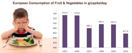 Al contrario, il consumo di frutta e verdura in Europa è in declino (vedi grafico sottostante).