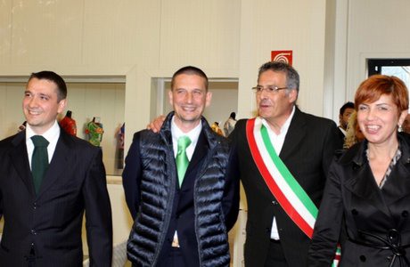 Da sinistra a destra: Ivan e Gino Giannetti, proprietari Globo; il Sindaco del Comune di Sora, Ernesto Tersigni; l'Assessore Regionale alle politiche agricole e valorizzazione dei prodotti locali Angela Birindelli.