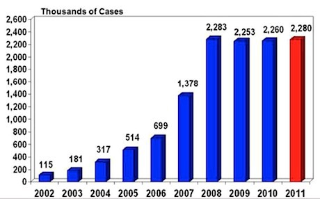 L'import di pesche sciroppate cinesi negli Stati Uniti, 2002-2011.