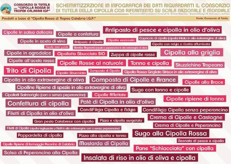 Prodotti a base di "Cipolla Rossa di Tropea Calabria IGP" realizzati in Italia. Clicca qui per un ingrandimento. Foto sotto: alcuni esempi.