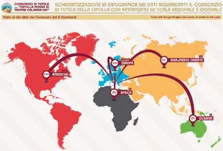 Nella presentazione dei dati di successo dell'IGP, il direttore del Consorzio, Simone Saturnino, ha illustrato anche in che modo si articola l'interesse da parte dei paesi esteri nei confronti del prodotto, rielaborando in forma grafica le cifre relative agli accessi al sito web del Consorzio. Il continente europeo è quello da cui arrivano il 69% delle visite al sito; seguono le Americhe con il 18% e l'Asia e Medio Oriente con l'8%.