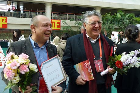La premiazione, per i numerosi successi in campo scientifico, è avvenuta, infatti, a Pechino nell'ambito del 7th International strawberry symposium dell'ISHS - International society for horticultural science in occasione del China Strawberry Culture Festival (nella foto sotto, un momento della premiazione del prof. Bruno Mezzetti e di Walther Faedi).