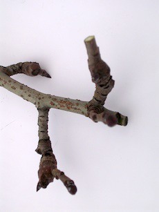 A sinistra, un brindillo: ramo di un anno con gemma terminale mista che tende a differenziare nel secondo anno le gemme miste dalla base al 50% della sua lunghezza. A destra, un ramo vegetativo: ramo di un anno con gemma terminale vegetativa che tende a differenziare nel secondo anno le gemme miste dal 50% della sua lunghezza fino all'apice. "Quando si pota - dice Fabio Galli - si tende a rispettare maggiormente il brindillo per mantenere la differenziazione a fiore il più vicino possibile all'ossatura della pianta".