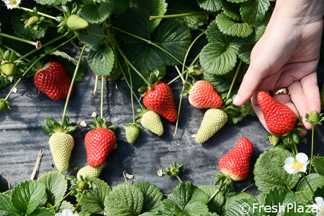 Tutta l'irrigazione delle piantine di fragole, che hanno bisogno di molta acqua, viene effettuata mediante la tecnica "a goccia", dosando i nutrienti disciolti nel liquido (fertirrigazione) e misurando accuratamente il pH dell'acqua.