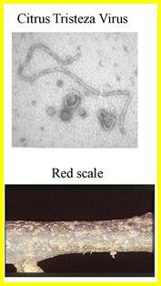 Un altro importante insetto riscontrato in campo è la cocciniglia rossa forte degli agrumi (Aonidiella aurantii, red scale), da sempre controllata dagli agrumicoltori con insetticidi, quali organofosforici e carbammati, verso i quali negli anni l'insetto ha sviluppato delle resistenze.