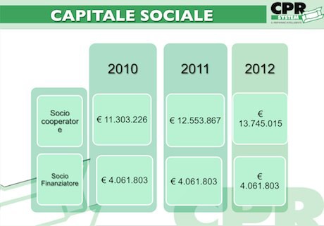 "Siccome le tariffe di CPR sono mediamente il 50% di quelle della concorrenza - ha aggiunto Piraccini - dovremmo paragonare il nostro bilancio a quello di un'azienda che fa 90 milioni. Inoltre, questo fatturato tiene già conto dei 3,51 milioni di ristorno applicato ai soci, tanto è vero che la gestione 2012 di CPR System chiude con 5 milioni di euro in attivo, di cui 1,48 viene capitalizzato. Il patrimonio netto raggiunge i 32,8 milioni di euro e conferma la solidità dell’impresa."