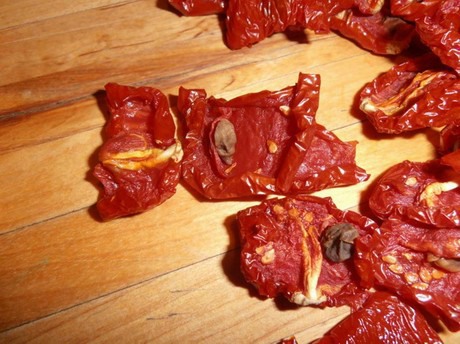 - pomodori essiccati ma con all'interno un elemento di distinzione, cioè un cappero. "La combinazione di sapori dei due elementi essiccati insieme è davvero particolare, unisce il salato del cappero all'acido dolciastro del pomodoro, creando un insieme di sapori e retrogusti davvero unico. Dall'immagine sembrerebbero pomodori freschi, in realtà sono essiccati: il procedimento di essiccazione mantiene molto bene i colori originali dei prodotti."