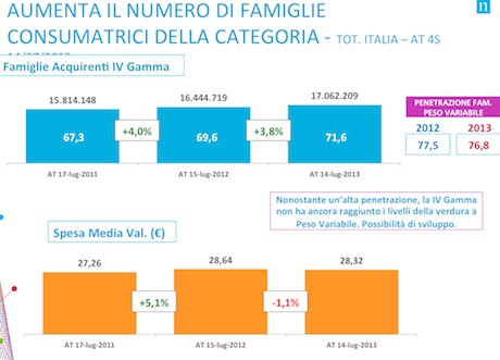 "La penetrazione tra le famiglie, però, ha ancora raggiunto i livelli della verdura a peso variabile", ha notato Nucci. Ci sono, dunque, possibilità di sviluppo (vedi grafico sottostante).