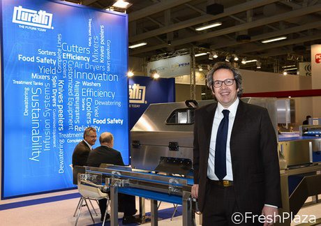 "Lo sterilizzatore continuo Mod. Safefruit – spiega a FreshPlaza Alessandro Turatti (nella foto qui sopra), direttore commerciale del gruppo e presidente di Turatti North America - è adatto a sanificare con cura e sterilizzare la buccia e la superficie esterna di diversi tipi di frutta, quali ad esempio meloni, angurie, ananas. Il sistema utilizza acqua calda ed è preferibile ad altri metodi di sterilizzazione alternativi - come quelli a vapore diretto o irradiazione - in virtù della possibilità di raggiungere tutti i punti più difficili della superficie, in particolare di quella irregolare di melone e ananas. Il trattamento non influenza il gusto, l'aroma, il colore o la consistenza dei prodotti finiti, garantendone al contempo la sicurezza alimentare essendo la soluzione ideale anche per prodotti freschi non processati."