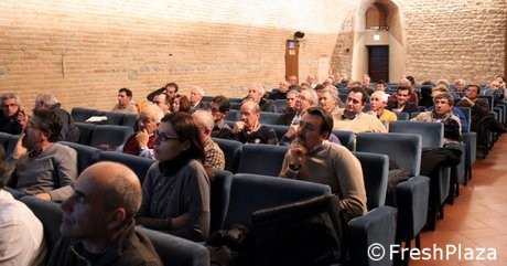 Alcuni dei relatori alla giornata studio. Da sinistra a destra Chiara Etiopi, del consorzio di tutela Ciliegia di Vignola, Stefano Caruso, del Consorzio fitosanitario di Modena e Stefano Lugli, dell'Università di Bologna