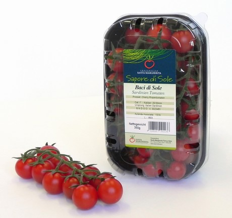 Tipologia Baci di Sole, piccoli frutti rotondi dal gusto invitante, che racchiudono il segreto della maturazione al sole di Sardegna. Calibro: 20/30 30/35; Grappolo: 8/10 frutti; Grado zuccherino: 6/8 gradi brix; Temperatura di conservazione: 8/10 °C; Tempo di conservazione: 15 giorni dalla raccolta; Periodo di produzione: tutto l'anno.