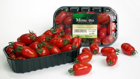 Minuetto è un "Mini San Marzano" che si rivela un concentrato di prezioso e delicato sapore solare. Calibro: 25/30 30/35; Grado zuccherino: 7/8 gradi brix; Temperatura di conservazione: 8/10 °C; Tempo di conservazione: 15/18 giorni dalla raccolta; Periodo di produzione: da ottobre a giugno.