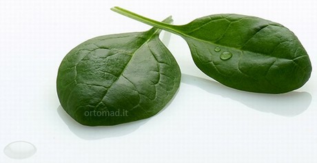 Infine lo Spinacino o Baby Spinach, coltivato dalla Ortomad per tutto l'anno, è un prodotto con dimensioni che vanno dai 6 ai 8 cm, è generalmente coltivato in serra per velocizzare i cicli invernali, proteggere la coltura e garantire una qualità costante. E' un prodotto totalmente differente dallo Spinacione, le sue foglioline di piccole dimensioni, tenerissime, con sapore terroso e un po' pungente sono consumate crude in insalata. Lo Spinacea Olearia contiene elevate quantità di acido folico o folacina, vitamina che si degrada con il calore. Lo spinacino date le modalità di consumo lascia inalterata tale vitamina e la rende disponibile al nostro fabbisogno quotidiano.