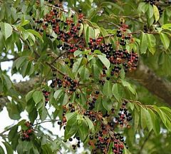 Il Prunus serotina, comunemente chiamato ciliegio tardivo o prugnolo tardivo, è una specie arborea, perenne, caducifoglia, alta fino a 20 m, originaria dell'America Settentrionale introdotta in Italia nel XIX secolo a scopo ornamentale.I frutti sono drupe subsferiche (diametro 0.8-1 cm) disposte a grappolo, prima verdi, poi rosse, quindi nere e lucide a maturità, contengono un nocciolo (endocarpo legnoso + seme).