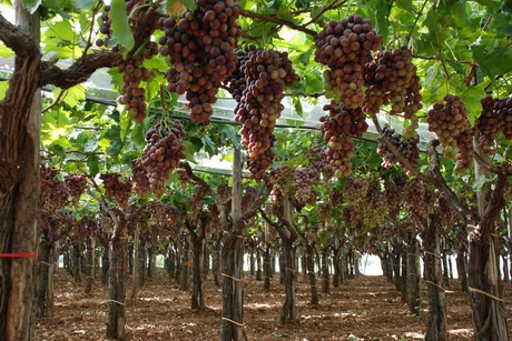 - Con semi - Italia (circa 15.000 ha), Vittoria (circa 6.000 ha), Red Globe (circa 3.500 ha), Palieri (circa 2.000 ettari), Regina (1.500 ettari), altre (500 ettari). Foto sotto: Uva Italia matura sotto copertura in novembre.