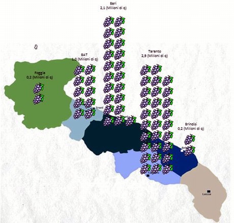 Più del 40% della produzione pugliese è ancora costituita della varietà "Italia", connotata dal tipico sapore di moscato, che ha rappresentato per tanti anni la storia e la ricchezza dell'uva da tavola della Regione.
