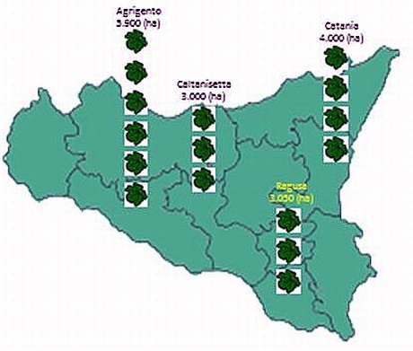 In Sicilia sono destinati a questa coltivazione circa 16.500 ettari totali, così suddivisi: 7.500 ettari nella provincia di Catania (Mazzarrone, Caltagirone, Licodia Eubea) e Ragusa (Acate, Chiaromonte Gulfi, Comiso); circa 9.000 ettari nella provincia di Agrigento e Caltanissetta (comune principale: Canicattì).