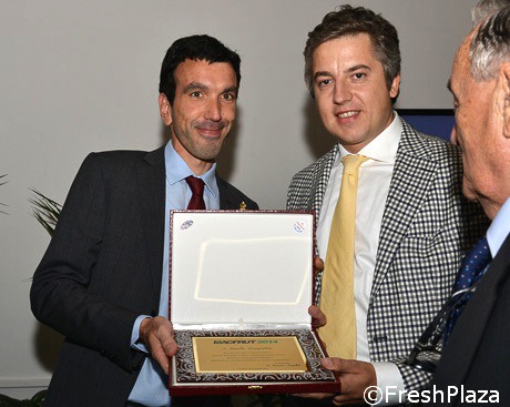Raffaele Spreafico riceve la targa a ricordo di Francesco: un uomo di grande levatura e spessore che tanto ha dato al mondo dell'ortofrutta, fornendo attraverso il proprio lavoro ed impegno un contributo fondamentale che rimarrà nel tempo.