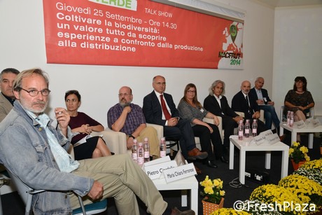 Sono intervenuti nel dibattito Giuseppe Ciotti (Funzionario Ufficio Sviluppo rurale - Mipaaf), Veronica Bertoldo (responsabile Ufficio associazionismo agricolo Regione Veneto), Claudio Mazzini (responsabile sostenibilità innovazione e valori presso Coop Italia), Cesare Bellò (consigliere delegato di OPO Veneto), Paolo Fontana (presidente della WBA-World biodiversity association), Maria Chiara Ferrarese (responsabile del settore Progettazione & Innovazione di CSQA Certificazioni), Paolo Manzan (presidente del Consorzio di tutela dei radicchi di Treviso e di Castelfranco IGP), Pietro Ciardiello (direttore della Cooperativa Sole), Ruggero Mazzilli (agronomo fondatore e coordinatore della Stazione Sperimentale per la Viticoltura Sostenibile per i biodistretti del Chianti), Laura Tinazzi (imprenditrice agricola - Azienda Agricola Fondo Prognoi di Verona). I lavori sono stati coordinati da Rossella Gigli, direttrice di FreshPlaza Italia. Si è collegato in diretta via Skype per un saluto e un augurio di buon lavoro l'on. Paolo De Castro, presidente per il Gruppo dei Socialisti e Democratici della Commissione Agricoltura e sviluppo rurale del Parlamento europeo.