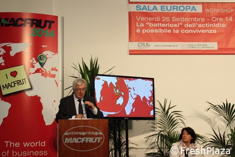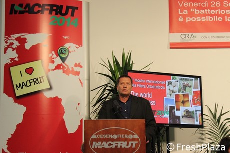 Nella foto, Marco Scortichini, del CRA, durante l'intervento nel pomeriggio, al Macfrut.