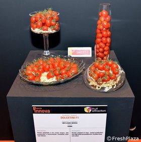 Tra i protagonisti di Pasarela Innova, l'esposizione che presenta ai visitatori di Fruit Attraction 2014 le innovazioni più interessanti del momento nel settore ortofrutticolo, la nuova varietà ibrida Dolcetini è già tra le "favorite" dei produttori spagnoli di pomodori mini-plum."Il mercato del pomodoro mostra una forte differenziazione che tende sempre più a prodotti di elevatissima qualità gustativa - dichiara a FreshPlaza Mauro Gallerani, responsabile Sviluppo di HM.Clause Italia - In tutti i Paesi europei la tipologia che sta crescendo di più è proprio quella del mini-plum, con frutti a forma di piccola prugna, calibro di 20-21 grammi, estremamente dolci, aromatici e dotati di buona consistenza. Questo perché, oltre al grado brix, il consumatore cerca il gusto".