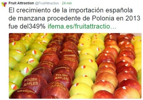 Rimanendo in tema di pomi, Fruit Attraction ha diffuso ieri un dato sulle importazioni spagnole di mele polacche, cresciute del 349% dal 2012 al 2013.