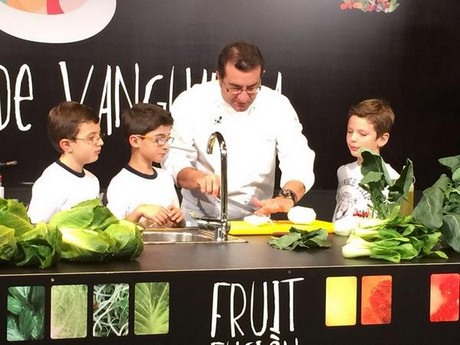 Uno showcooking ieri, durante Fruit Attraction. Piccoli chef di domani crescono.