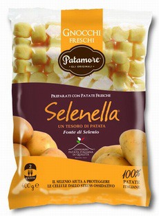 In collaborazione con la Patamore, nota per i suoi prodotti che utilizzano ingredienti esclusivamente italiani, la patata al selenio Selenella arriva ora anche sotto forma di gnocchi. Le patate usate sono di prima qualità e vengono cotte a vapore per preservarne le qualità. Sono in vendita in buste da 400 grammi.