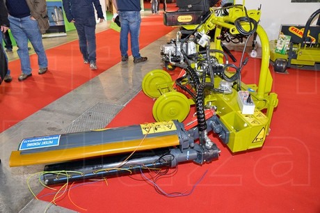 Altra caratteristica è il fatto che può venire applicata anche anteriormente ai trattori dotati di sollevatore anteriore o guida reversibile. La macchina è dotata di un allargamento idraulico che le permette di lavorare in diversi tipi di impianti con larghezze diverse da fila a fila. Il tutto è comandato con comandi elettrici supportati da pompa idraulica e radiatore di raffreddamento olio.