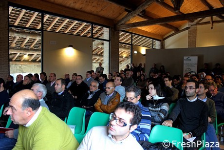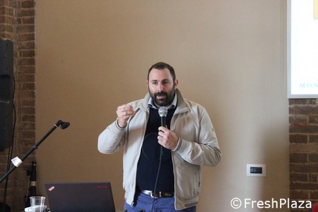 Alessandro Piva, del CIO, durante il suo intervento al forum sulla sostenibilità del pomodoro da industria.