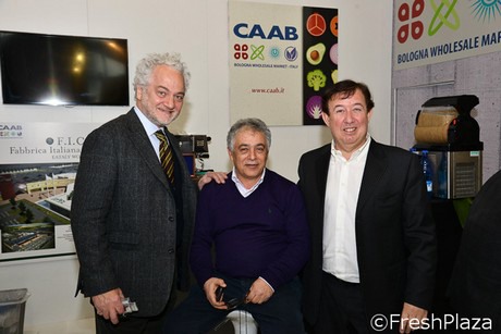 L'Eurofrut alla passata edizione di Fruit Logistica. Da sinistra a destra Duccio Caccioni, del Caab-Centro AgroAlimentare di Bologna, Angelo Russo e Roberto Dona', rispettivamente Presidente ed Export manager dell'Eurofrut, che opera presso il Caab