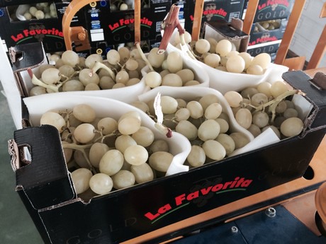 Tutto questo attraverso i due marchi della società. Il primo è 'Ottima', usato per commercializzare, soprattutto in Francia, l'uva di I categoria; il formato di vendita comprende esclusivamente la cassettina in legno da 30x50 cm. Il secondo marchio è invece 'La Favorita' ed è destinato all'uva di qualità extra; in questo caso il formato può essere sia la cassettina in legno che quella in cartone, in tutti i formati di peso. "E' proprio a marchio 'La Favorita' - riprende l'amministratore - che siamo fornitori dei supermercati del gruppo Auchan, nei punti vendita a insegna Atac, Proximarché, Flunch, Bi1".