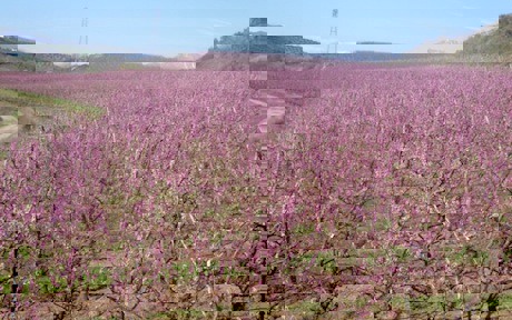 Impianto di peschi in fioritura nella Piana di Sibari.