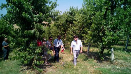 Alcuni vincitori dell'edizione passata del concorso in visita presso i frutteti di pesca Saturnia presso l'azienda agricola Eleuteri a Montecosaro