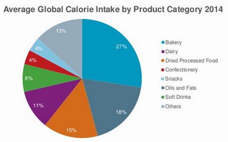 Prodotti caseari (dairy), bibite (soft drinks) e altri alimenti confezionati contribuiscono al rimanente 20% dell'apporto calorico complessivo nell'alimentazione della popolazione mondiale.