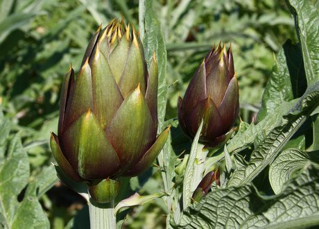 Sopra e sotto: alcune tra le tante diverse varietà di carciofo.
