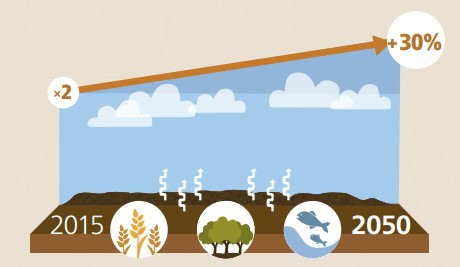 Seguendo il trend attuale, da qui al 2050 le emissioni in atmosfera di gas serra da parte dell'agricoltura, della silvicolture e della pesca aumenteranno del 30% (Fonte FAO)