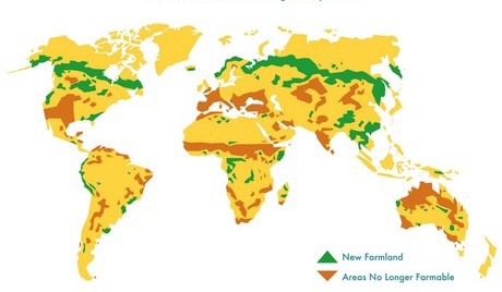 La mappa è una rappresentazione di come sarà la Terra nel 2100, individuando quelle che diventeranno, a seguito appunto dei cambiamenti climatici, le nuove aree coltivabili e quelle che invece non lo saranno più. Interessante notare come, nella rappresentazione, una buona parte dell'area mediterranea non sarà più coltivabile, Italia, Spagna, Francia e Grecia comprese. Se le previsioni di Mauser e colleghi dovessero rivelarsi corrette il risultato sarà, come riporta How We Get To Next, una superficie di terra coltivabile (tra nuove aree coltivabili e quelle che lo sono rimaste da qui al 2100) maggiore di quella attuale, ma meno produttiva perché meno fertile.