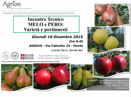 "Con il pesco che soffre della nota crisi di mercato e l'actinidia ancora ostaggio della batteriosi, i frutticoltori piemontesi guardano al melo e, con rinnovato interesse, anche al pero, con giustificata attenzione. Dalla sperimentazione di campo sono risultate numerose le varietà e le selezioni avanzate di mele e pere che hanno superato la griglia di selezione focalizzata sull'elevata qualità dei frutti e sulla facile governabilità della pianta. Le positive conferme dal pieno campo vanno ad arricchire e aggiornare le liste delle varietà consigliate. Dai risultati sono infatti emerse alcune cultivar di mele interessanti perché uniscono resistenza a ticchiolatura ad alto livello qualitativo dei frutti e recenti varietà di pere "tolleranti" al colpo di fuoco batterico, grave patologia arrivata recentemente in Piemonte, che può rappresentare un serio ostacolo alla diffusione di questa specie".