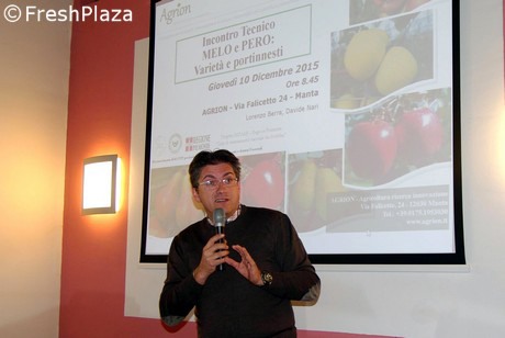 Giacomo Ballari, presidente Agrion, ha aperto il convegno sottolineando l'importanza della corretta scelta varietale e del portinnesto al fine di far convergere la "sostenibilità ambientale" con la "sostenibilità economica" , proprio partendo dalla valutazione di varietà che siano competitive in termini di resistenze/tolleranze ai patogeni chiave del melo e del pero, performance produttive e standard qualitativi elevati.
