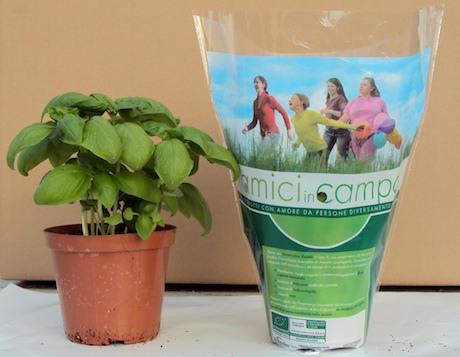 "Cerchiamo – riprende il presidente – di commercializzare con il nostro marchio Amici in campo (foto sotto), dov'è possibile. Al contempo, comunichiamo sulla vaschetta e sul vaso quella che è la nostra storia; ma è difficile raccontare una storia del genere dietro a due foglie di basilico, ed è un peccato non poter riferire appieno quello che facciamo per il territorio. Sarebbe bello, una volta tanto, raccontare qualcosa di positivo".