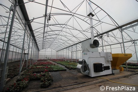 La serra ricostruita dopo la nevicata di febbraio. A destra si nota la caldaia che riscalda la struttura: è a pellet, come tutte le altre al Bettolino.