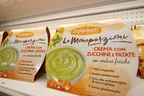 Della nuova linea Le Monoporzioni fa parte anche la Crema con Zucchine e Patate. Nella foto, il display a Marca 2016.