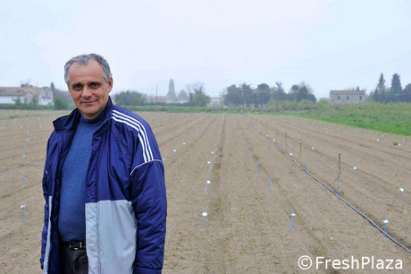 Maurizio Bacchi in un campo sperimentale a Cesena.