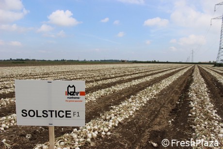Nell'ambito della crescita della cipolla bianca, riprende Cavalieri, "la nostra varietà che si è diffusa di più è stata Solstice F1, molto apprezzata per la buona risposta che ha dato al grande caldo della scorsa estate. Con le alte temperature, mediamente le cipolle tendono ad andare in stress e a produrre di meno, ma Solstice ha retto, dimostrandosi molto affidabile e con un bulbo di ottima conservabilità abbinato a una precocità di ciclo di raccolta. Quando una cipolla si comporta bene sotto stress, allora fa capire che si comporta ovviamente bene anche in condizioni normali. Solstice è una varietà con poca cera nelle foglie, il che le conferisce diversi vantaggi. Sulle cipolle la genetica Nunhems è orientata a varietà che siano forti, rustiche e adattabili per dare un qualcosa in più alla produttività finale".