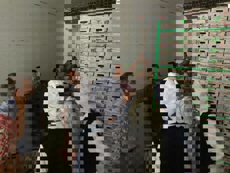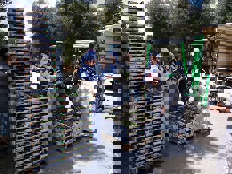 Fase di scarico e palettizzazione nel piazzale di carico sul luogo di produzione (Torre Canne).