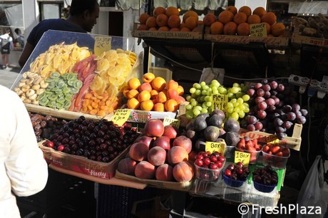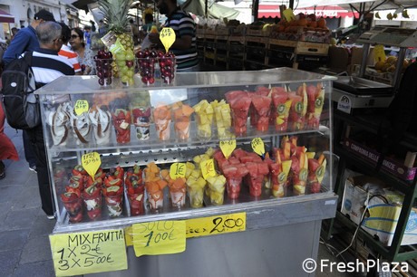 Guardando la sua bancarella, si notano albicocche a 8 euro il chilogrammo, ciliegie a 10, mele e le pere a 3,99, fichi a un euro l'uno. Il venditore cerca anche di fornire dei servizi ai consumatori: ecco allora i bicchieri di frutta già tagliata con anguria, melone, fragole, ciliegie, kiwi, ananas, uva. A seconda della composizione, ogni bicchiere (che pesa almeno 200 grammi, ci tiene a precisare Hossan) costa 1 o 2 euro, con sconto per chi ne compra tre (cinque euro invece di sei).